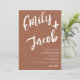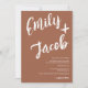 En modern, djärv och elegant bröllopsinbjudan med anpassade namn med en handskriven markör borstad kalligrafi i boho-terrakotta och vitt. All text, namn och bakgrundsfärger är anpassningsbara. En enkel och minimalistisk inbjudan. Lägg till din qr-kod för en allt-i-ett bröllopsinbjudan med rsvp, detaljer och mer information.