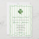 Denna stilrena gröna och vita Shamrock-inbjudan design skulle vara perfekt för en modern och avspänd bröllopsfest för par med ett St Patricks Day-tema. Med trendiga ränder, en vågig kant och en handmålad fyrklöver. Du kan ändra färgerna på alla element (förutom shamrock) via designverktyget.