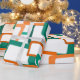 Detta papper har en modern utformning av skevade rektanglar med vitt hål i tårtans och orangens nyans.