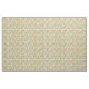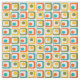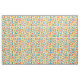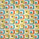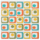 Denna väv har en modern utformning i mitten av århundradet av fyra rundade rektanglar i fyra rader med ovaler inuti dem i orange, gult, grönt och turkos.