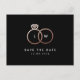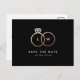 En modern monogram får glamour med sammanflätade falska vigselringar i roséguld och enkel personlig text som gör detta spara datum-kort till en ny klassiker med strömlinjeformad text i mjuk dammig roséfärg på klassiskt svart. Anpassa all text på detta minimalistiska spara datum-kort och lägg till ett förlovningsfoto för en nedtonad och enkel look samtidigt som du styr dina gäster till att spara datum för din stora dag.