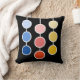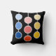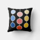 Moderna vackra röda blå gula nyanser i hängande cirklar dekoration på svart bakgrund Kastkudde.