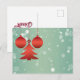 Moderna röda prydnadsföremål och Träd-jul Helg Vykort
