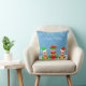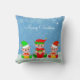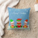 Moderna roliga söta jul tomte vänner iklädda rött och grönt på himmelblå kudde. Texten kan anpassas. God Jul!