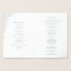 Ett modernt och elegant vikt bröllopsprogram med modern typografi och konfettipunkter. Detta bröllopsprogram är perfekt för formella bröllop och julbröllop. Framsidan och baksidan av kortet är tryckta med ÄKTIG silverfolie. Insidan av kortet är inte folie.