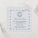 Ett modernt utformat Airmail-motiv med en mittstämpel som säger "Att ha och att hålla, Från denna dag framåt" och en blå sjöstjärna på stämpeln. Röda och blå Airmail-ränder med en vit kant för att få det att sticka ut. En ljusblågrå bakgrund och svagt vitt mönster genom hela bakgrunden för att ge känslan av ett flygutskickskuvert. Om du vill ha ett annat färgschema eller kanske vill byta ut sjöstjärnan mot något annat, vänligen maila paula@labellarue.com INNAN DU Anpassar eller lägger din beställning så att en ny designmall kan skapas åt dig.