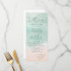 Vacker turkos abstrakt vattenfärgsglande havsvåg och hjärtan i sandbotten, överst med snyggt och elegant serif-typsnitt, modernt och enkelt. Underbara bröllop-menykort för sjöbadsbröllop, tropiskt destinationsbröllop, kusthav temat bröllop under sommaren.