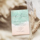 Vacker turkos abstrakt vattenfärgsglande havsvåg och hjärtan i sandbotten, överst med snyggt och elegant serif-typsnitt, modernt och enkelt. Underbart tack för ert kort för sjöbadbröllop, tropiskt destinationsbröllop, kusthav temat bröllop under sommaren.
