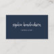 De här minimalistiska, elegant-mörken navy blue-affärskorten har modern skripttypografi parad med enkel och professionell matchande vit text.