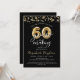 Modern och festlig 60-års födelsedagsinbjudan med titeln You Are Invited to a Party 60 YEARS IN THE MAKING i kalligrafi-typografi och falska metalliska gyllene ballongnummer och gyllene serpentiner och konfetti och vita ljus i din valda bakgrundsfärg (visas i svart). HJÄLP: För hjälp med designändring eller anpassning, färgbyte, överföring av designen till en annan produkt eller om du vill ha koordinerade föremål, kontakta designern INNAN du beställer via Zazzle Chat eller e-post makeitaboutyoustore@gmail.com.