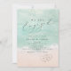 Vacker turkos abstrakt vattenfärgsglande havsvåg och hjärtan i sandbotten, överst med snyggt och elegant serif-typsnitt, modernt och enkelt. Underbar inbjudan till sjöstrandens förlovningsfest, kusthavets tema bröllop under sommaren.