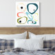 Denna minimalistiska abstrakt-konst har färgfulla geometriska former som liknar småstarna.