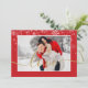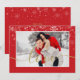 Modern julkort med gratulationer med fallande snöflingor med ett foto som du kan anpassa genom att lägga till ditt eget foto, med vacker elegant script typografi av ordet kärlek. Du kan lägga till ett personligt säsongsmeddelande på baksidan i guldbokstäver. Designad av Thisisnotme©