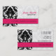 Modern stilfull rosa visitkort för elegant damastast blommönster. Också tillgängligt i rosor. Typsnitt, stilsortsformatet, stilsortsfärg och stilsorten placerar kan skräddarsy för att passa din stil.