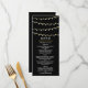 minimilistiskbröllopenkelmodernsträngljusvitt och guldträdgårdsljussvart och vitglittrigbröllopsmeny