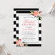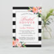 Moderna Streckiga Blommiga Silver Inramning Bröllo Inbjudningar
