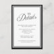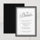 Modern svart och vit bröllopsdetaljkort designat för att hålla dina gäster informerade i en ren, organiserad layout. Lägg till din schema, boende och extra information för en polerad, lättläst infogning som passar perfekt med din inbjudan.