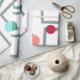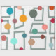 Detta papper har en modern utformning av grått-trapezoider med färgfulla cirklar på dem.