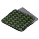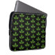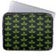 Moderna trefärgade gröna lagerbladsmönster på svart datorsleeve.