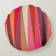 Runda kuddar i ett retromodernt geometriskt mönster av avlånga trianglar, i skuggor av fuchsisk rosa, chokladbrun, djupröd, brun och orange, accinerad med senapsprodukter och gult