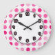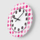 Moderna rosa polka dots-väggur med punkter på klockan ansikte i den här dekorativa väggavtagningskurvan för flickor, barn eller sovrum på college. Lägg till i vilket rum som helst i ditt hus som du vill lägga till färg och tecken. Färger omfattar rosa och vitt.