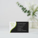 Modern tandläkarevisitkortmall i en slät design som inkluderar ett lycklig tandsymbol och grönt, vit och den svart färgkombinationen, som står egentligen ut. Skräddarsy den texten dig önskar långt. Deigned för ett tandläkarekontor och bemanna, den tand- gruppen eller kliniken.