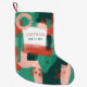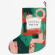 Modernt abstrakt grafiskt rött, rosa + grönt glatt liten julstrumpa