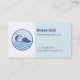 Ett visitkort med en logotyp i form av en modern blå linjeillustration av en simmare med simdator och simmössa som simmar bland vågorna. Perfekt för simlärare och livvakter. Anpassa enkelt med din information i de medföljande textmallarna.