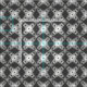 Det atom-" geometriska mönster Mitt--Århundradet för modern ` av koncentriska ellipsformiga ringar - skuggar av silvergrått/grå färg och vit på en djup kolgråttbakgrund