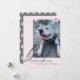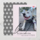 Ett modernt julkort med ditt favoritfoto, dekorativt hjärta, skrivstil "bark" och modern font "de håriga änglarna sjunger" överlagt på ett dammigt ljusrött kort. Baksidan av kortet är ett tassmönster överlagt på medelgrått.