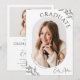 En modern inbjudan till examensfirande med minimalistisk svart-vit bladlinjekonst. Denna enkla inbjudan till examensfest är perfekt för din fest. Anpassa själv med hjälp av våra onlineverktyg för mallar. PROVFOtona INGÅR INTE. BYT UT MOT DINA EGNA FOTON INNAN DU BESTÄLLER.