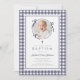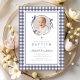 Modern Blå Gingham Foto Pojk Dop Inbjudan. För bästa resultat, ladda upp en fyrkantig bild på barnet.