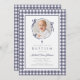 Modernt Blått Gingham Foto Pojk Dop Inbjudningar
