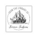 Denna moderna gummistämpel "Från biblioteket hos" har ett fartygsmotiv med anpassat namn.