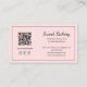 Modern logotyp för bageri QR sociala medier ikoner Rosa visitkort. Lyft ditt hembakade bagerivarumärke med detta stilrena och funktionella visitkort. Med en mjuk rosa bakgrund kan du visa upp din bagerilogo, lägga till en QR-kod för enkel åtkomst till din webbplats eller meny och anpassa ikoner för sociala medier för att matcha dina plattformar. Perfekt för små bageriägare, hembakare och konditorer som vill lämna ett bestående intryck. Anpassa med dina uppgifter för att skapa en unik och professionell look.