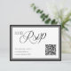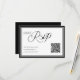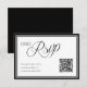 Modern svart och vit RSVP-kort med en skannbar QR-kod för snabba online-svar. Håll det enkelt och organiserat samtidigt som du ger gästerna ett enkelt sätt att svara – perfekt för en ren och minimalistisk brölloppsserie.