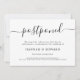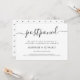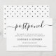Svart och vitt modernt bröllopsförseningskort med ett prickmönster på baksidan. Om ditt bröllopsdatum har ändrats är detta ett bra sätt att meddela dina gäster.