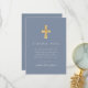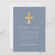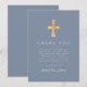Modernt dammigt blått religiöst pojkfirande av första kommunion Tackkort.