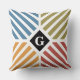Ge ett fräscht tillskott till dina inomhus- eller utomhusutrymmen med denna anpassningsbara prydnadskudde som har en modern design med diagonala ränder i dämpade nyanser av blå, grön, orange och röd. Ändra initialen för att skapa en unik accentkudde som passar till en mängd olika inredningsstilar. Perfekt för inomhusbruk i vardagsrum eller sovrum eller för utomhusbruk på veranda eller uteplats. Gör en fin husuppvärmningspresent till nya husägare.
