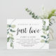 Modern Rustik Grönska Eukalyptus, svart skript-tema inbjudningskort (med korttitel: Inget fancy, bara kärlek). Det är perfekt för din bröllopsmottagning / efterbröllopsfirande. Lägg till dina detaljer i matchande svart teckensnitt / bokstäver.
