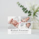 Modern unik födelseannons-kort med dekorativt hjärta som binder samman bilderna, namn, födelseinformation, meddelande och 3 bilder i ett rutnät. Anpassa baksidan eller ta bort texten för handskrivet meddelande. Ett underbart sätt att meddela din bebis ankomst till vänner och familj.