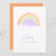 Enkelt modernt minimalistiskt lila, orange och gult vattenfärgsfärgat regnbåge med Grattis på födelsedagen-kort för henne med orange färg i fast form på motsatt sida.