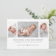 Modernt födelsekort med 3 foton collage och klassisk typografi.