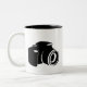 Grafisk symbol för svart kamerasilhouette för muggen/koppen för fotografifläktkaffe.