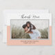 .: Denna design har en vacker, minimalistisk rosa och vit bakgrund, handskriven font och en plats för att lägga till foton fram och bak.