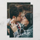 Meddela din stora dag med detta moderna fotots "spara datum"-kort med ert favoritförlovningsfoto och elegant handskriven typsnittsstil. Den minimalistiska layouten och naturliga färgtonerna skapar en varm, romantisk estetik som känns både personlig och stilren. Perfekt för par som älskar rena, fotocentrerade designs med en touch av autenticitet. Anpassa enkelt namn, datum och foto för en unik souvenir som sätter tonen för er kommande bröllopsfest.