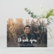 Ett modernt och kallt studentenkort som presenterar "tack" i en ny och tillfällig handskriven typografistil för vit som frammanar looken av en borstamarkör.