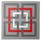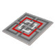 Keramiskt belägga med tegel i ett retro modernt mönster av interlocking kvadrerar, i grafitgrått/grå färg, djupt - rött och vit, på en medelgråttbakgrund
