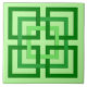 Keramiskt belägga med tegel i ett retro modernt mönster av interlocking kvadrerar, skuggar in av limefrukt till smaragdgrönt, på en pastellfärgad mintgröntbakgrund
