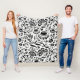 Modernt geometriskt trädgårds- blom- svartvitt fleecefilt